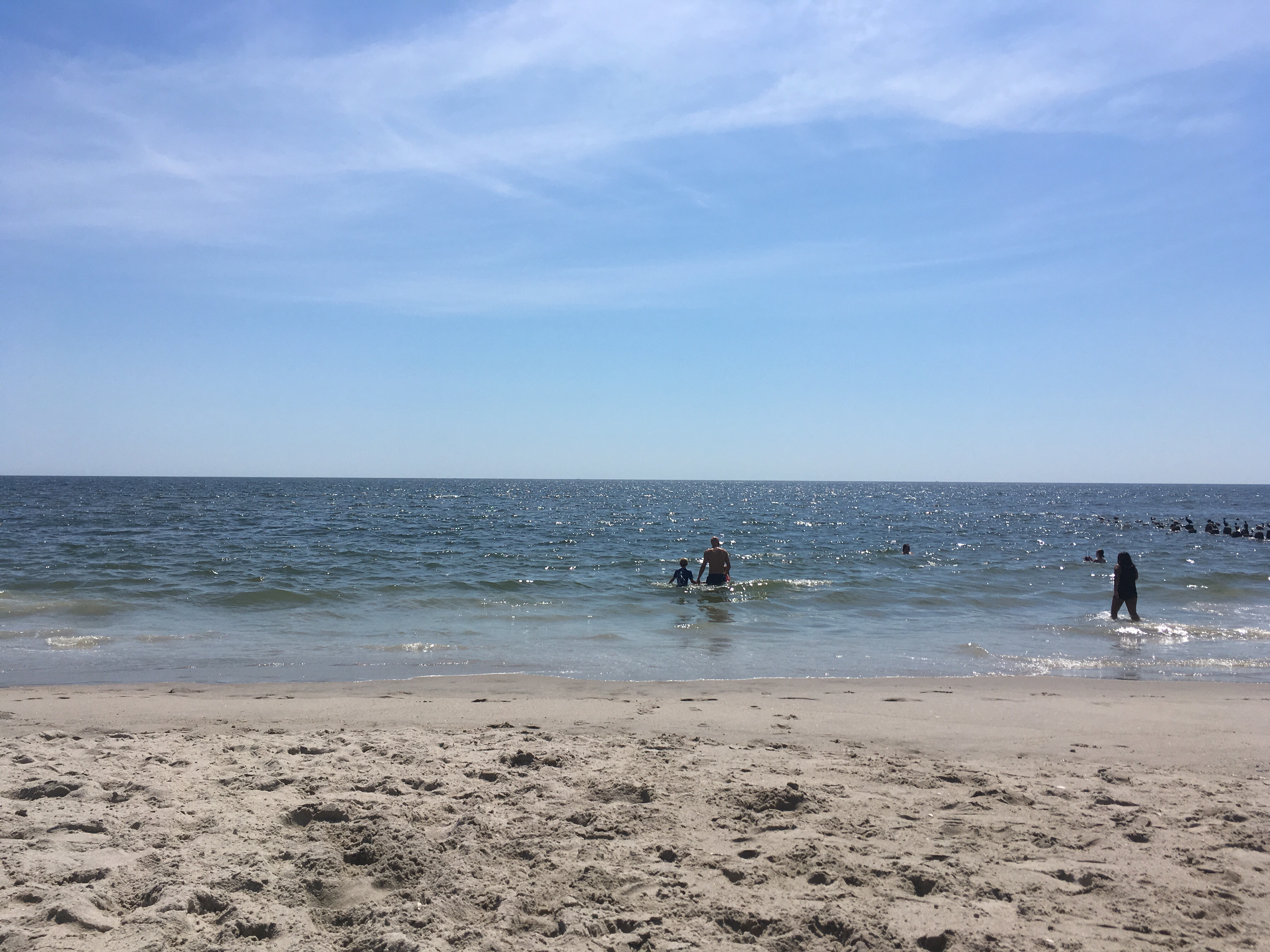 I lørdags skulle vi købe skoleuniformer til Emil og Nanna. De skal have grønne polo-trøjer med skolens logo. Størrelsesguiden på hjemmesiden var ikke særlig logisk fremstillet, så vi blev enige om at køre derud for så at tage på stranden efterfølgende. Det var ikke super nemt med subway, så vi havde egentlig bestilt en Uber (det er ret stort her) men så kunne vi i stedet for låne en bil af nogle af Michaels søde kolleger. Så lørdag morgen kl.10 drønede vi mod uniformsbutikken, fik indkøbt både kort- og langærmet polotrøjer og så videre til stranden. Vi kørte mod en strand, der hedder Jacob Riis, som er ca 50 min kørsel fra os.