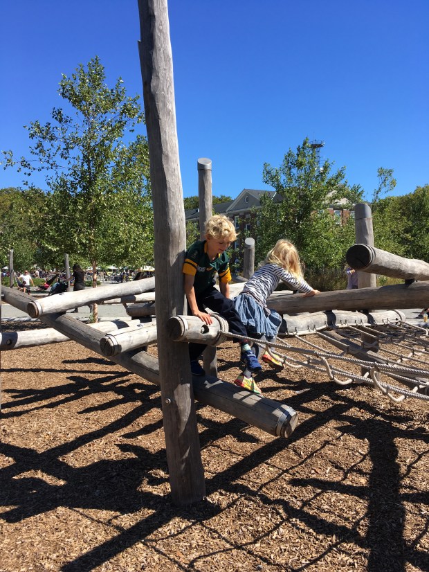 Søndag tog vi på udflugt til Governors Island, som ligger lige syd for Manhattan. Vi kan tage færgen lige neden for vores dør og direkte derned. Det var sidste dag i denne sæson, så får vi først muligheden til foråret igen. Vi lejede cykler derude og cyklede denne lille ø rundt. Det var som at træde ind i en helt anden tidslomme, og hvis det ikke var for Manhattan skyline, skulle man også tro, at vi befandt os lidt mere sydligt. Det er en grøn oase, der er gode legepladser og meget roligt. Der kører ingen biler, så cykler, løbehjul og rulleskøjter er absolut oplagt at medbringe.