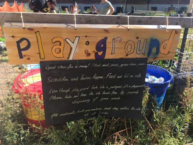 Der er også en legeplads, som vel egentlig ligner mest en losseplads, men som lærer børn at genbruge