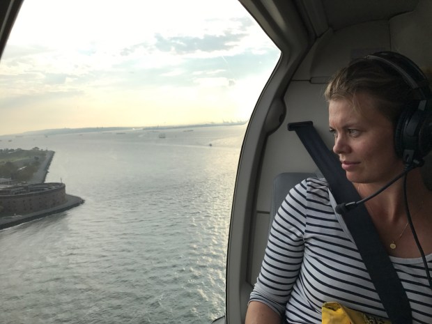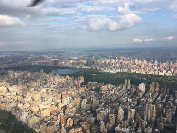 Vi fløj ud over Governors Island, videre forbi Frihedsgudinden og så nordpå ved Manhattans vestside. Vi vendte lidt nord for Columbia University og så sydpå igen. Vi var væk i ca 30 min.