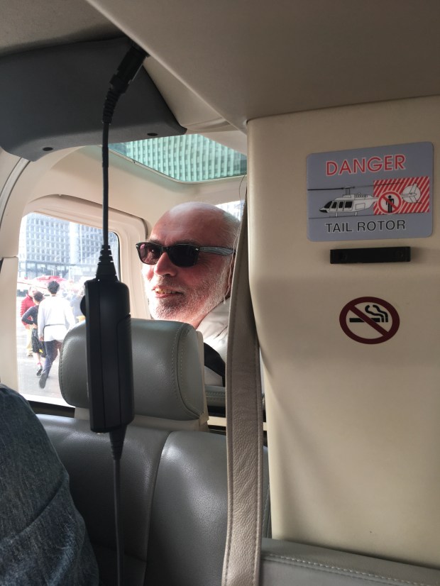 Vi blev fordelt i helikopteren efter vægt, og udover os fire, var der to andre fyre med samt piloten. Min far fik tildelt pladsen ved siden af piloten, og jeg tror vist aldrig, jeg har set ham mere lykkelig. Hans gamle drøm om at blive pilot gik en lille smule i opfyldelse deroppe på forsædet 😊 Michael og jeg sad med Emil mellem os, hvilket var så fint, for Emil var ikke så stolt ved det inden vi fløj, men bagefter var han rigtig glad og stolt over, han havde prøvet at flyve i en helikopter.