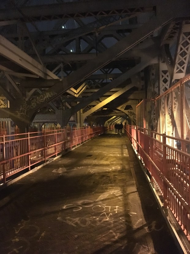 besluttede vi at gå hjemad. Fordi vi var i East Village, og fordi vejret var lunt, gik vi hjem over Williamsburg Bridge.