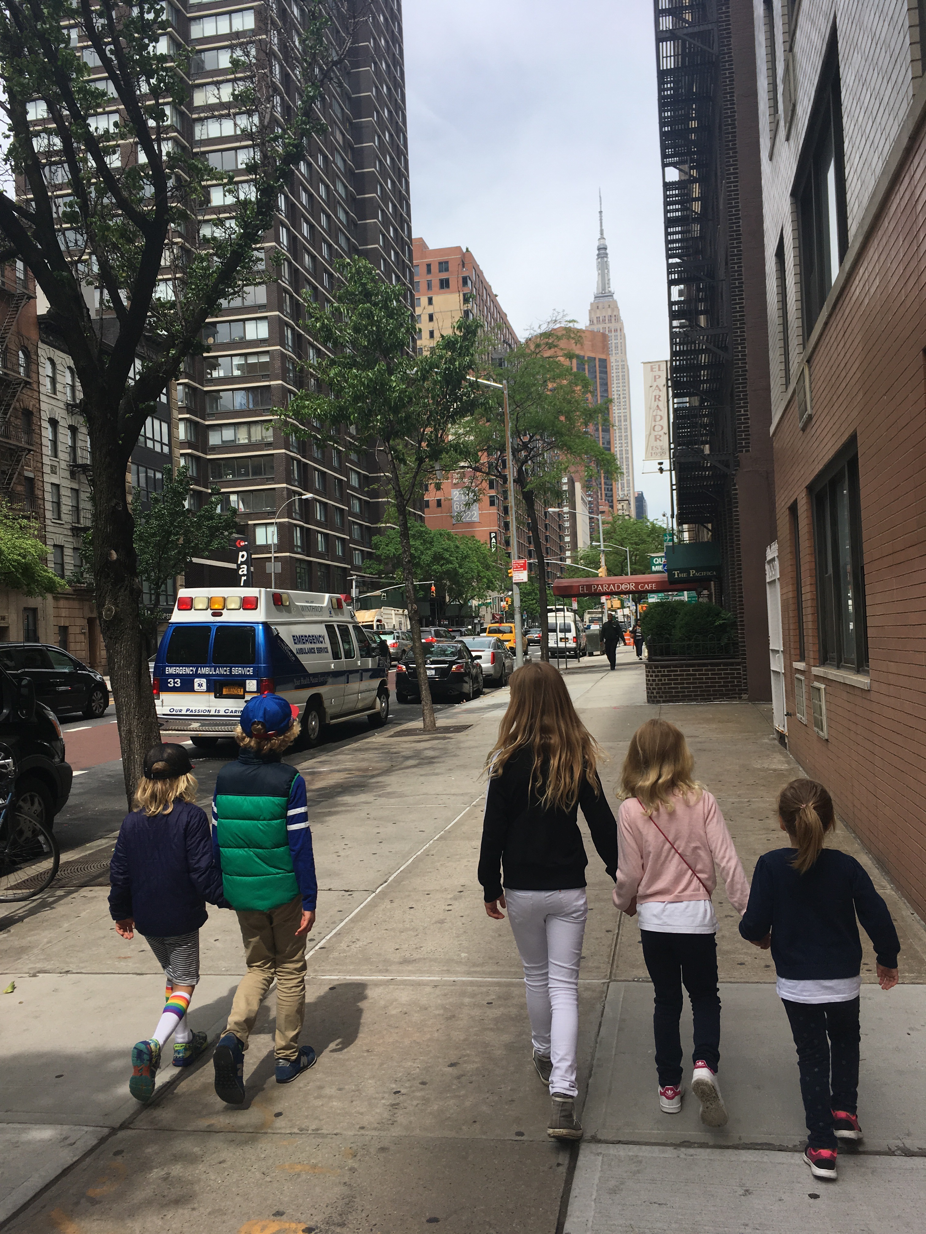 Altså det forår er simpelthen bare forsvundet fra os så hurtigt, og så har der alligevel været tid til ret meget, bl.a. besøg af skønne venner og veninder. Jeg tror, de fleste der bor i udlandet kan genkende, hvor skønt det er at have besøg hjemmefra, men også hvor hårdt det er. Jeg skrev jo lidt om afskeden med nogle af de bedste og hvor hårdt det var for Emil og Nanna. Der gik en uges tid, hvor begge børn skulle “samles” lidt op igen, afleveringerne om morgenen med Nanna blev rigtig svære igen og generelt var der ekstra behov for ro og kram. Derefter skruede jeg godt op for lege aftalerne, Michael og Emil spiller tennis hver morgen inden skole og arbejde og så er vi ved at planlægge en tur til Catskills i en lånt hytte, hvor dagene skal gå med mountain biking, vandre i bjergene, bade i havens badesø, lave mad over bål og vist bare generelt nyde roen, bjergene og alt det grønne natur, der er lidt en mangelvare her i New York. Men så har New York heldigvis så meget andet. De/vi har heldigvis fundet ind i den gode hverdag igen her i Williamsburg, og hjemveen er ikke så hård, som den var for bare en uge siden. Der er også flere gode ting at tælle ned til; sommerferien starter om lidt, vi skal til Catskills, og så har vi bestilt flybilletter til San Fransisco, hvor vi skal mødes med mormor, morfar, moster og baby Caroline, som nok var en baby da vi rejste for 10 måneder siden, men nu er hun to år. Åhhh, savnet til hende er fortsat stort hos Emil og Nanna, så de glæder sig så meget til at være sammen med hende igen. De har planlagt, at hendes barnestol skal være mellem dem, når vi cruiser rundt i Californien ❤️