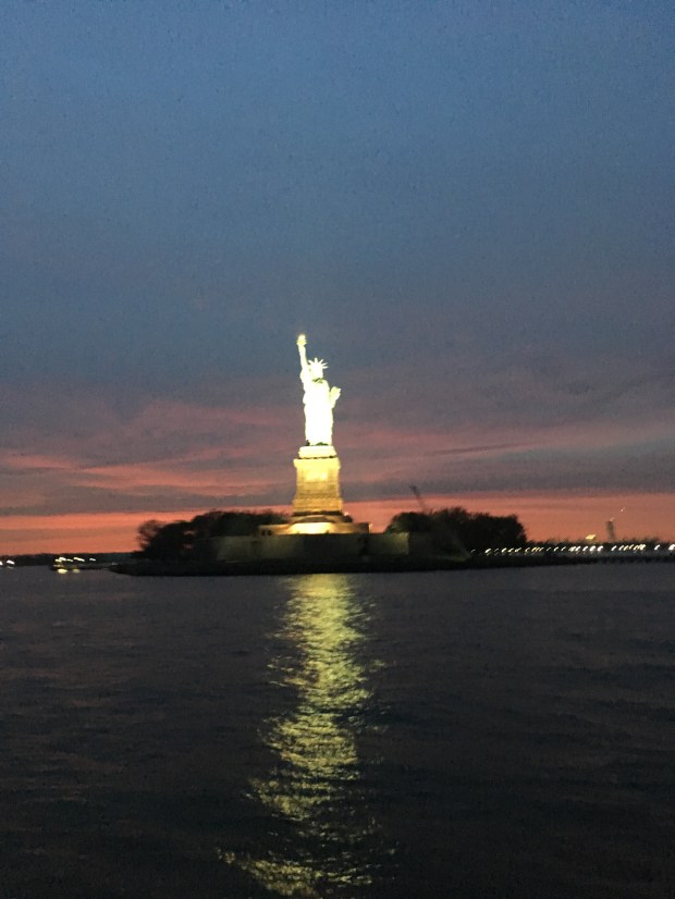 Aftenen før min fødselsdag var jeg inviteret på en bådtur af nogle af de danske piger, som desværre rejser hjem til sommer. Dorte var lige ankommet, så hun røg med. Kombinationen af jetlag, ikke særlig søstærk og en meget stærk gin og tonic (for det var helt sikkert dens skyld alene..!) gjorde at nogen havde det lidt dårligt dagen efter, så jeg gik i sympati tømmermænd 😉 Den første time af min fødselsdag, blev faktisk fejret i selskab med Dorte på The Rainbow Room (Top of the Rock) efter endt bådtur og igen fik vi en meget stærk drink (lige en service meddelelse, hvis nogen planlægger en rejse til New York; drinksene her i byen er MEGET stærke 😉). Den anden time af min fødselsdag blev stadigvæk fejret med Dorte, nu i selskab af en well over priced hotdog og dernæst på en undergrundsstation, hvor der aldrig kom et tog. Den tredje time af min fødselsdag havde vi endelig fundet den rigtige subway, så vi kunne komme hjem i seng inden hele banden stod klar med flag og fødselsdags sang for fodenden af min seng næste (samme!) morgen