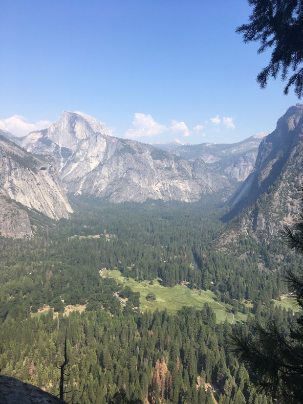 Da vi kørte fra San Francisco tog vi videre til Yosemite, hvor vi havde to overnatninger. Vi måtte ud på en større omvej til hotellet da der desværre hærgede en større skovbrand, så vi susede i stedet rundt i skarpe bjergsving men vi fik til gengæld den mest storslåede udsigt med på vejen.