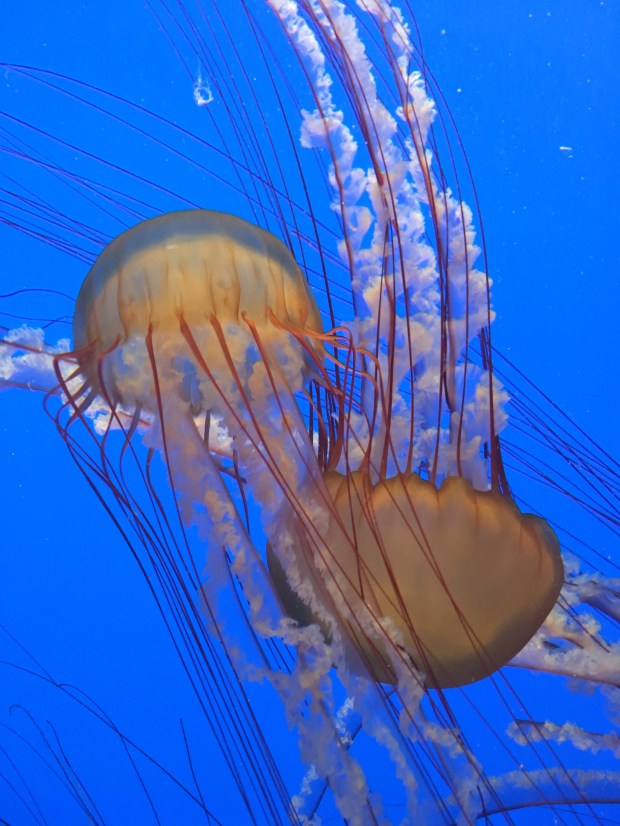 Således nåede vi også til Monterey efter Yosemite. En hyggelig lille og tidligere fiskerby, som nu i dag har har rejst sig som en by fuld af gallerier og et stort akvarium. Akvariummet skulle besøges og det fortrød vi absolut ikke. Her var hovedsageligt havdyr fra omkring Monterey som blev vist og formidlet på en ret interessant måde og som både børn og voksne kunne forholde sig til. Se bare de skønne billeder