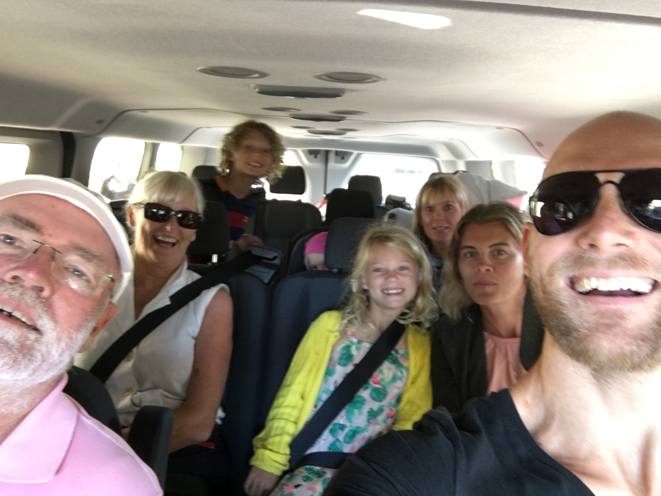 Der er altså bare noget helt specielt over sådan en road trip, og det er vist næsten ligegyldigt hvor på planeten man drøner rundt, så kan det altså noget. Se nu os; vi drøner rundt i en skøn mini bus (noget Ford et eller andet, den er hvid og har 12 sæder – vi er 8) – og vi hygger os gør vi. Her er rigeligt med “Oles nye autobil” sunget af mormor, Emil og Nanna når Caroline er ved at være lidt slidt i autostolen, der er næsten fri iPad tid (bortset fra bjergkørsel og andet slinger som kan resultere i noget gris i bilen), masser af reality anekdoter fra de to ældste medlemmer, som efterhånden er ret garvede udi Californien rejser, som vi andre suger til os.